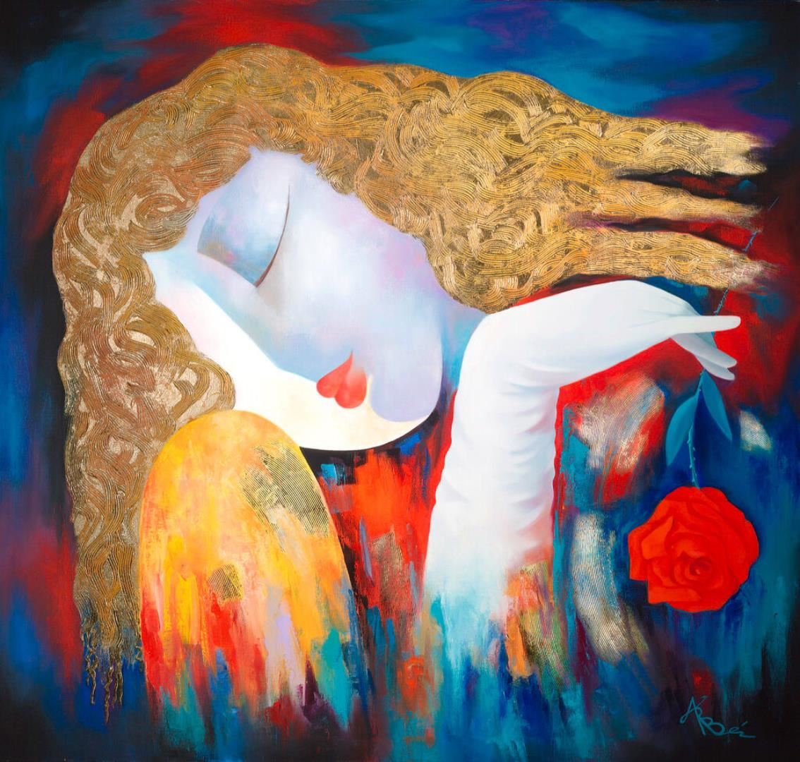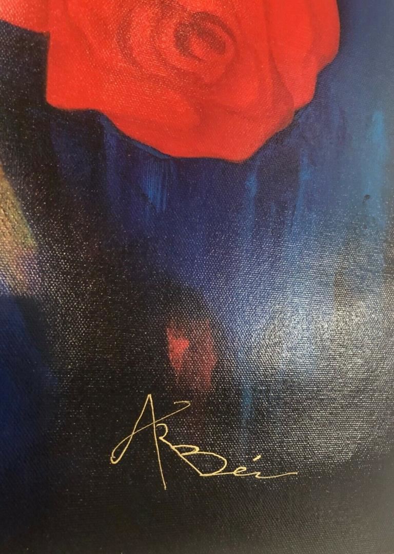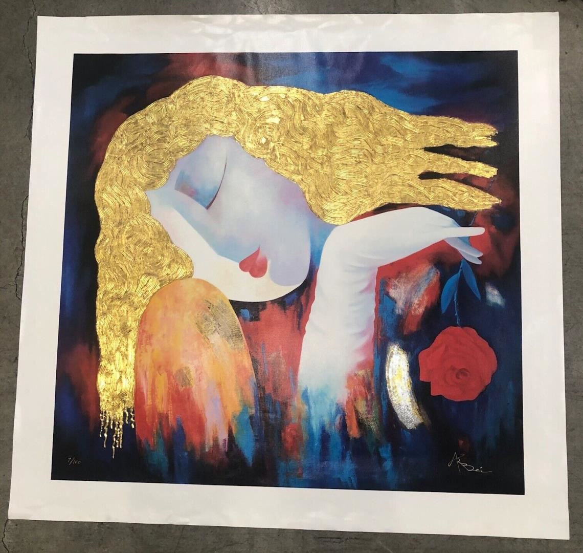 A beautiful gold leaf -hand embellished giclee on canvas, hand signed by Arbe and created for Celebrity Cruise Line Auctions, 36x34", with COA