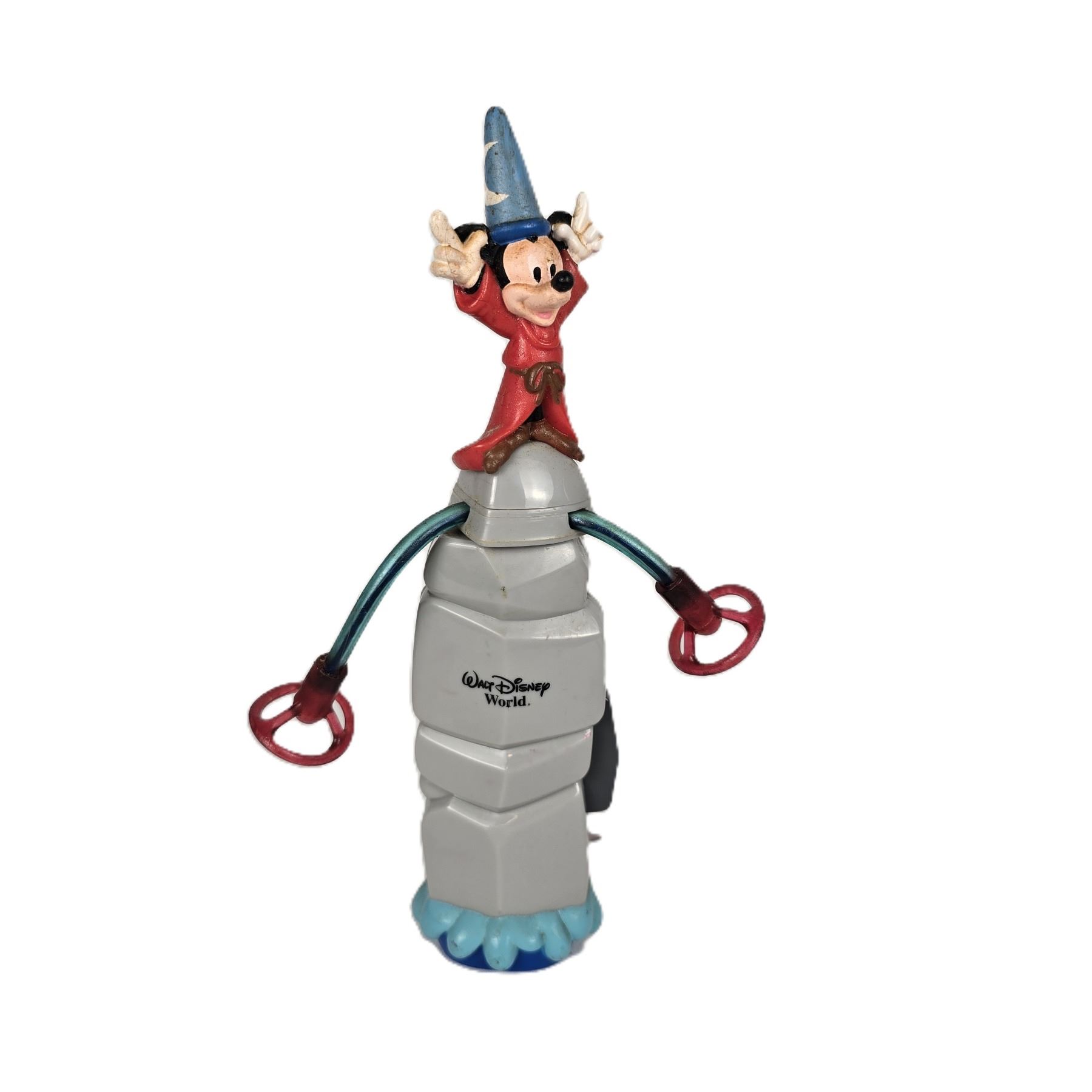 (Walt Disney World) this is an electronic light chaser toy. It is made to look like Mickey as the Sorcerer's Apprentice standing on the rock directing the water. It is tested and working. It measures ~ 9” tall, 3” in diameter and weighs 4.5 oz.