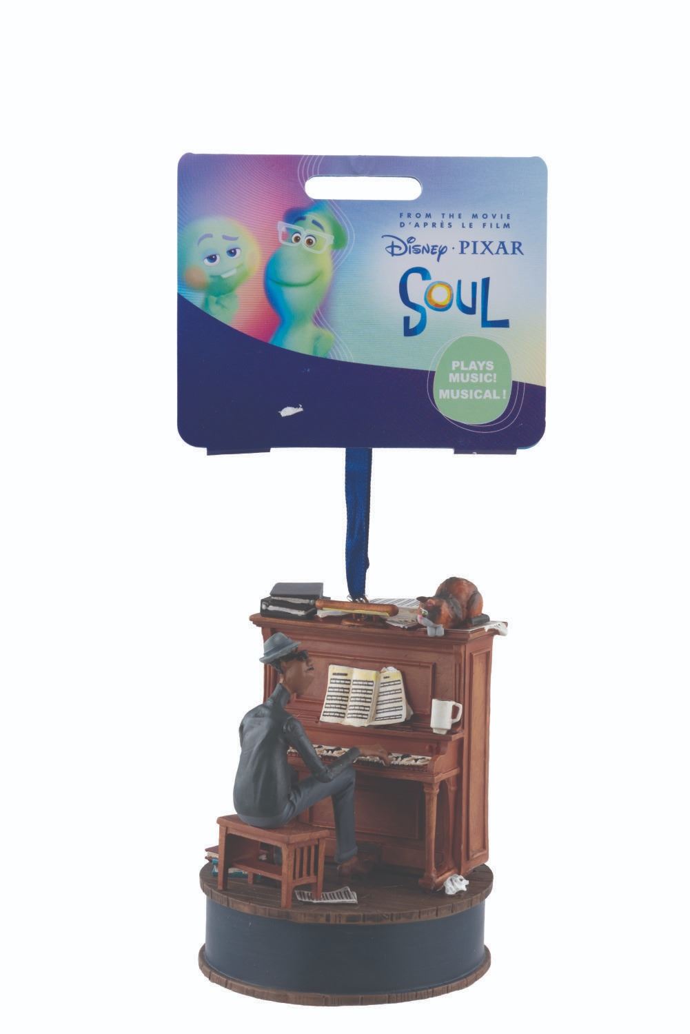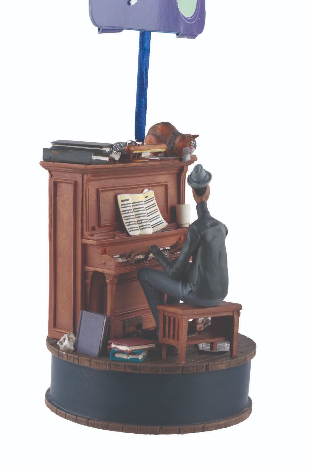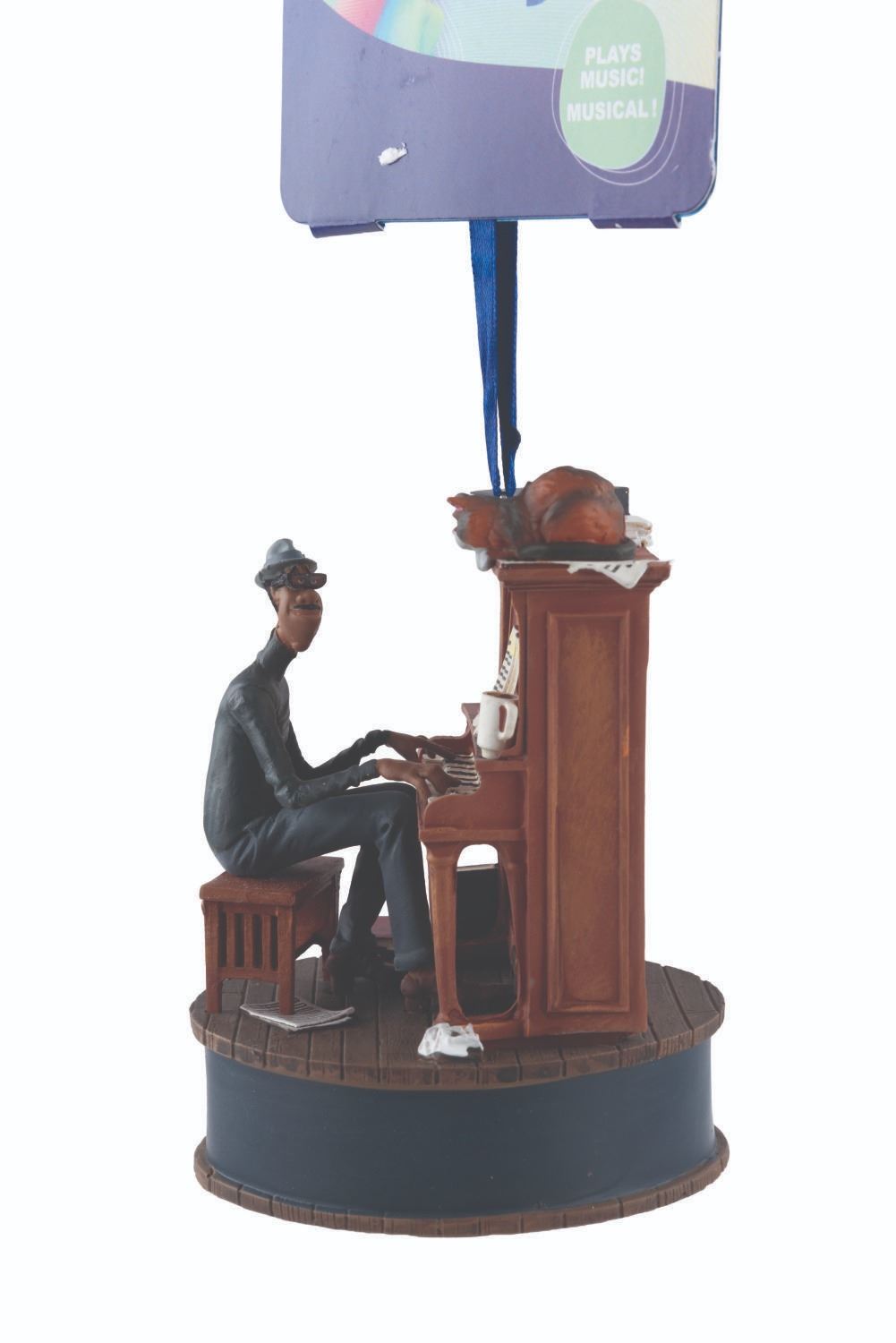 (Disney, 2020) An ornament of"Soul" featuring Joe playing the piano as Mr. Mittens listens in. The musical feature plays piano music, working when tested. The ornament is in fine unused condition with the original box.