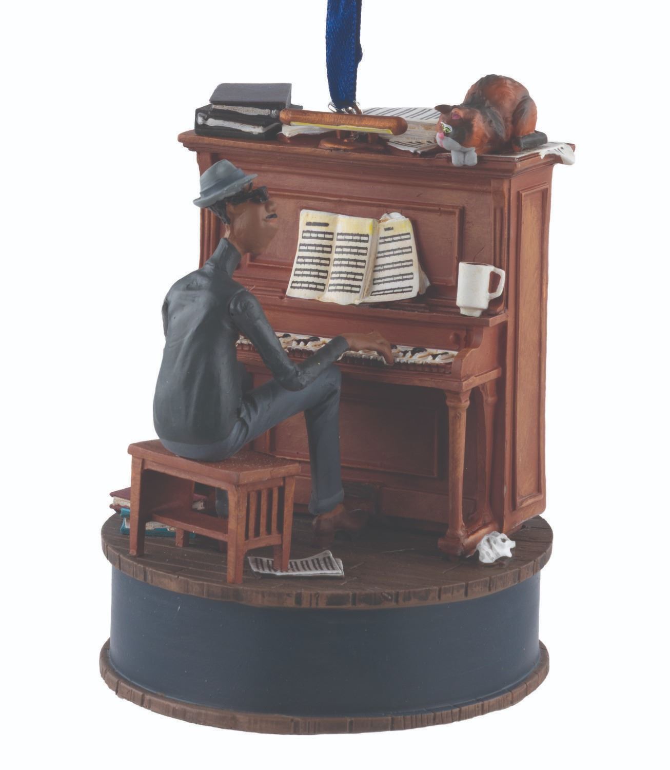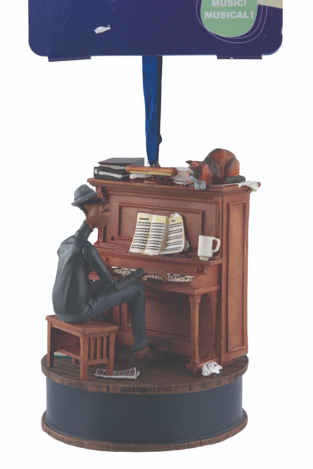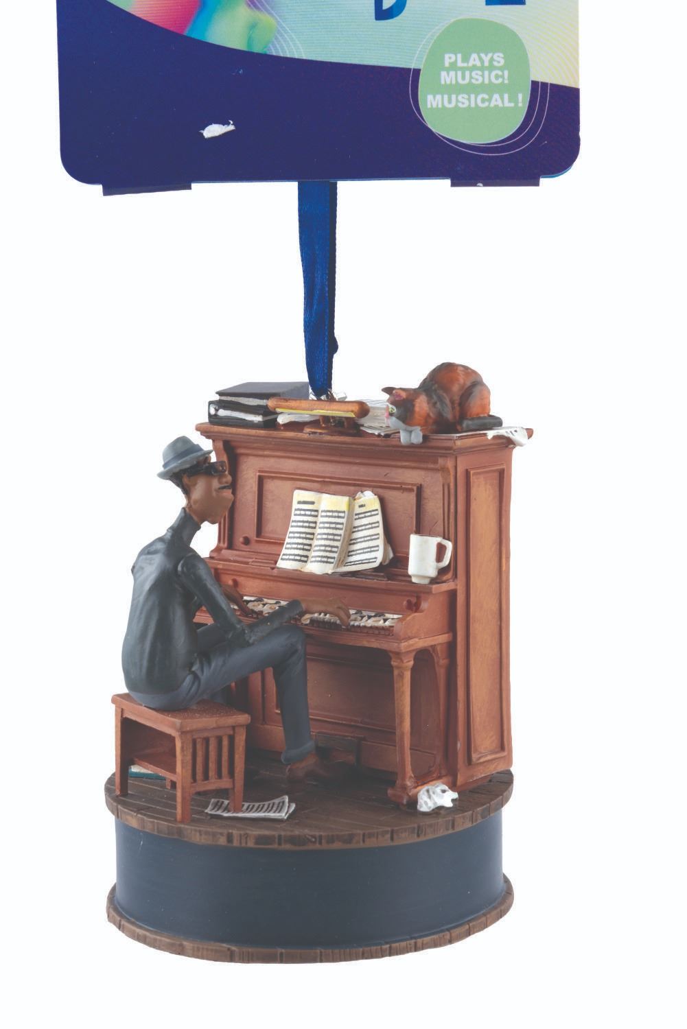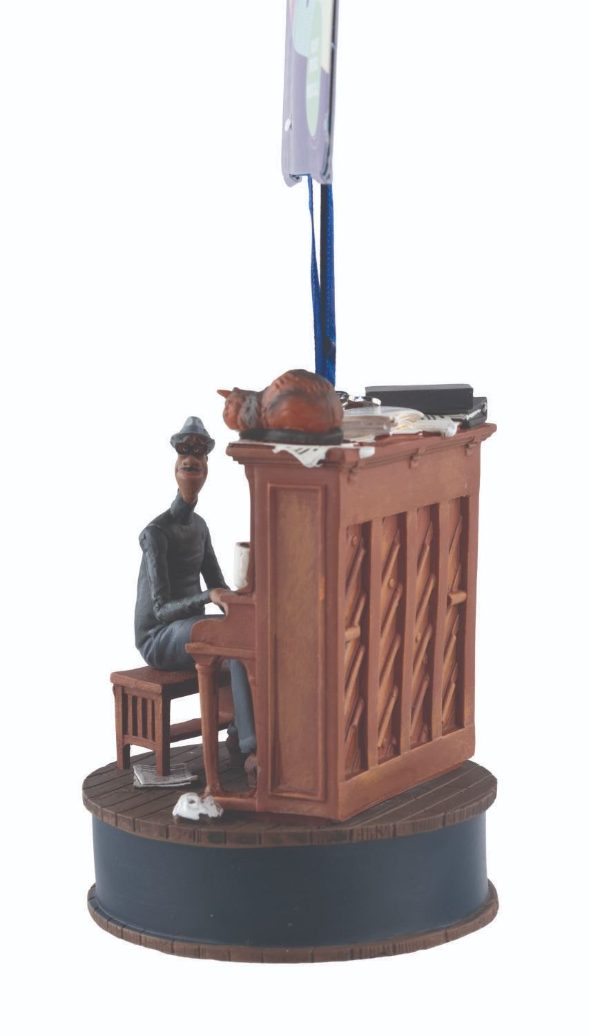 (Disney, 2020) An ornament of"Soul" featuring Joe playing the piano as Mr. Mittens listens in. The musical feature plays piano music, working when tested. The ornament is in fine unused condition with the original box.