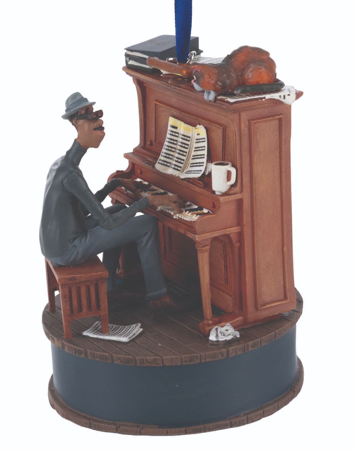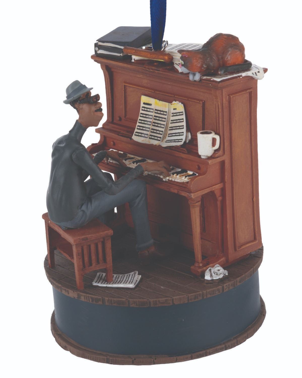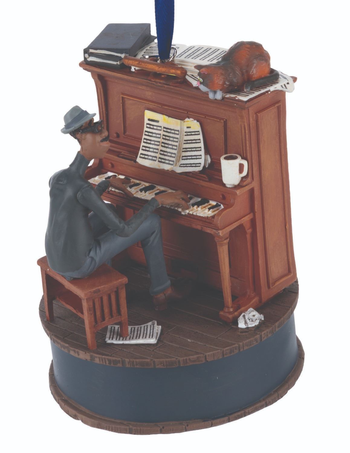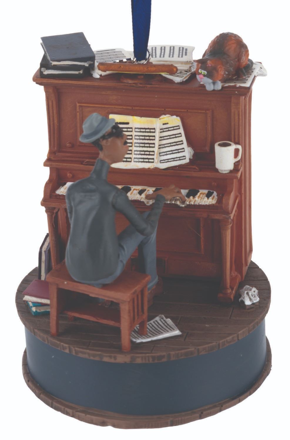 (Disney, 2020) An ornament of "Soul" featuring Joe playing the piano as Mr. Mittens listens in. The musical feature plays piano music, working when tested but requiring fresh batteries to play fully. The ornament is in fine, unused condition with the original box.