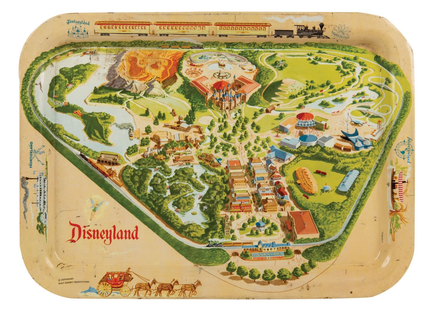 (Disneyland, 1955) An early Disneyland souvenir metal tray featuring a color map of the park. Measuring 12.5"x17.5", the tray is in good condition.