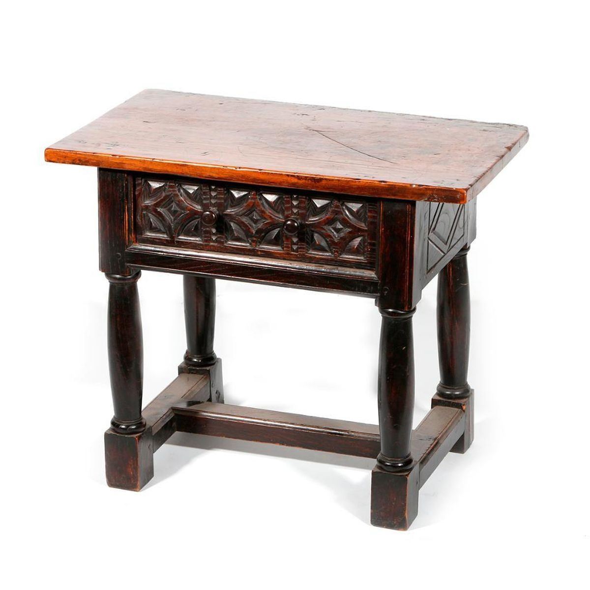 A 19th century Spanish Colonial one drawer table measuring 22 inches high x 25 1/2 wide x 15 3/4 deep.