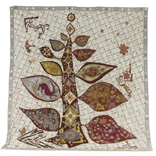 <B>A Sri Lankan Quilted Panel<BR></B></I>Workshop of Ena de Silva, Colombo, Sri Lanka<B><BR></B></I>Circa 1980-1985<BR>Cotton with embroidery floss<BR>108 x 84 inches (274.3 x 213.4 cm)<BR>Unmarked<BR> <BR>A pieced, embroidered and quilted hanging panel of tree-of-life design with beasts contained within leaves, on geometric embroidered ground.<BR><BR><b>Shipping:</b> Requires 3rd Party Shipping (<a target="_blank" href="http://www.heritageauctions.com/common/shipping.php">view shipping information</a>)