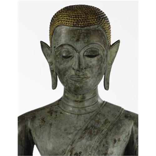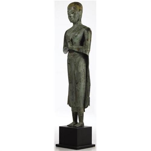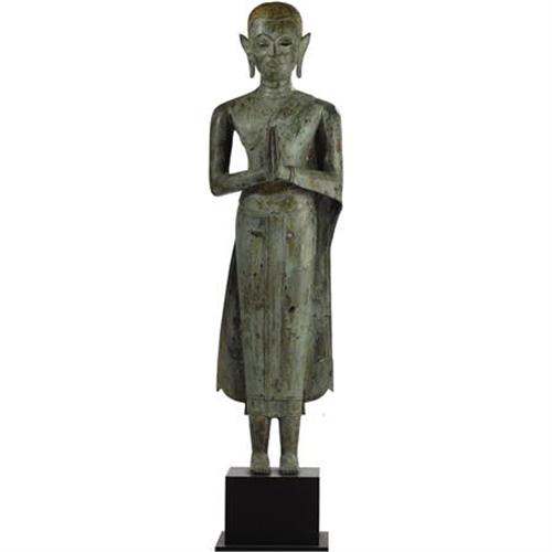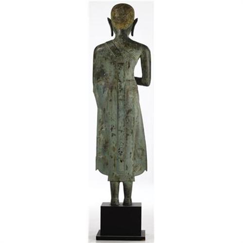 <B>A Standing Bronze Disciple of Buddha<BR></B></I>Unknown maker<BR>Nineteenth Century<BR>The sculpture of the disciple, possibly Moggallana, his hands held together<BR>Unmarked<BR>52 inches high x 16 inches wide x 12 inches deep<BR><BR><b>Shipping:</b> Requires 3rd Party Shipping (<a target="_blank" href="http://www.heritageauctions.com/common/shipping.php">view shipping information</a>)