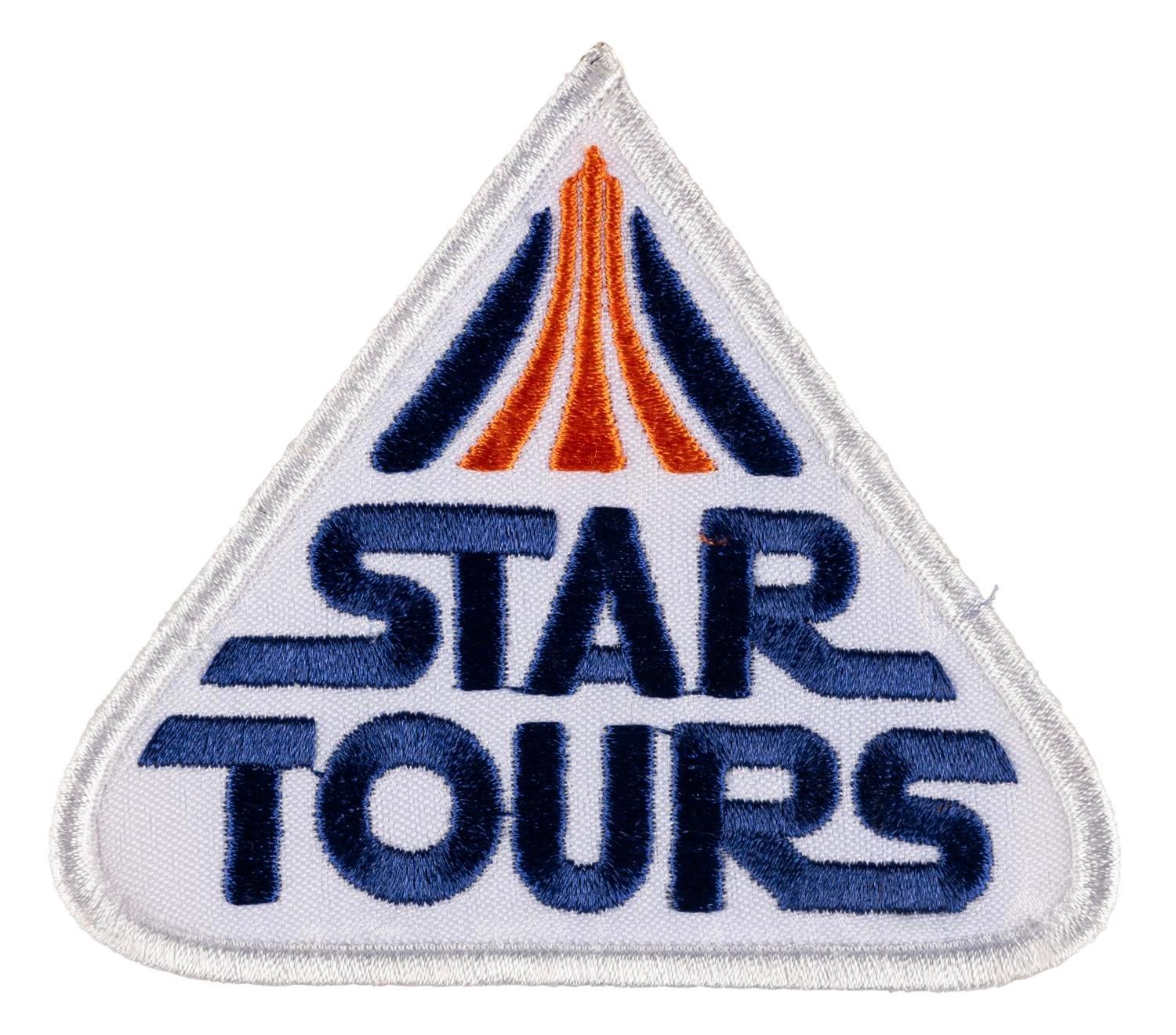 (Disneyland, 1987) An original logo patch created for Star Tours Cast Member costumes. This is the earlier style of patch used in the first iteration of the attraction. Measuring approximately 3" x 3.5", the patch is in very good condition with light fraying from age.