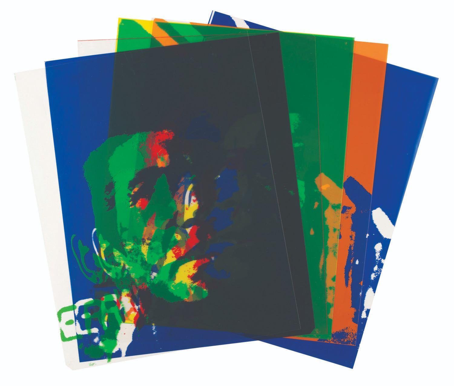 (Paramount, 1979) An original portrait of William Shatner as Captain Kirk in "Star Trek: The Motion Picture.” From the collection of Bill Wallen, who helped create the promotional and advertising campaigns for the film, this portrait was created during production and is composed of seven layers of semi-transparent color which, when stacked, form the full image. Each layer measures 14” x 11” and is in very good condition with light handling and edge wear.
