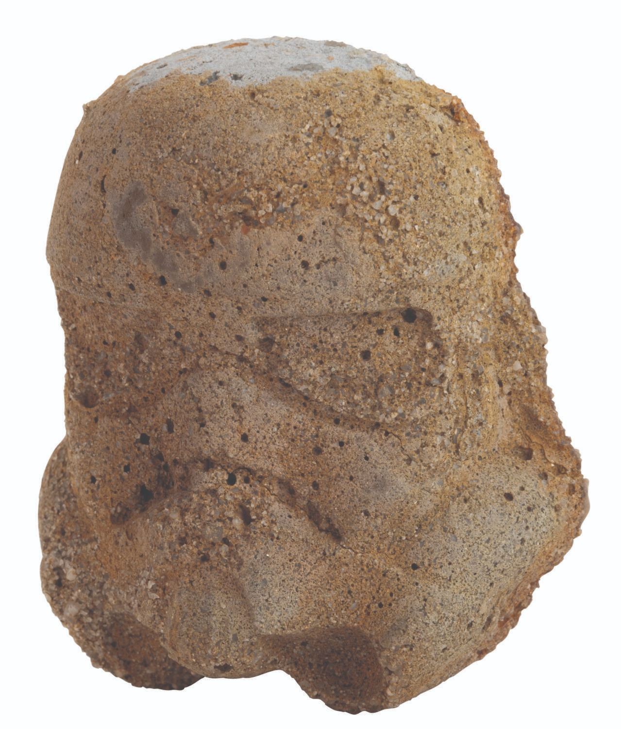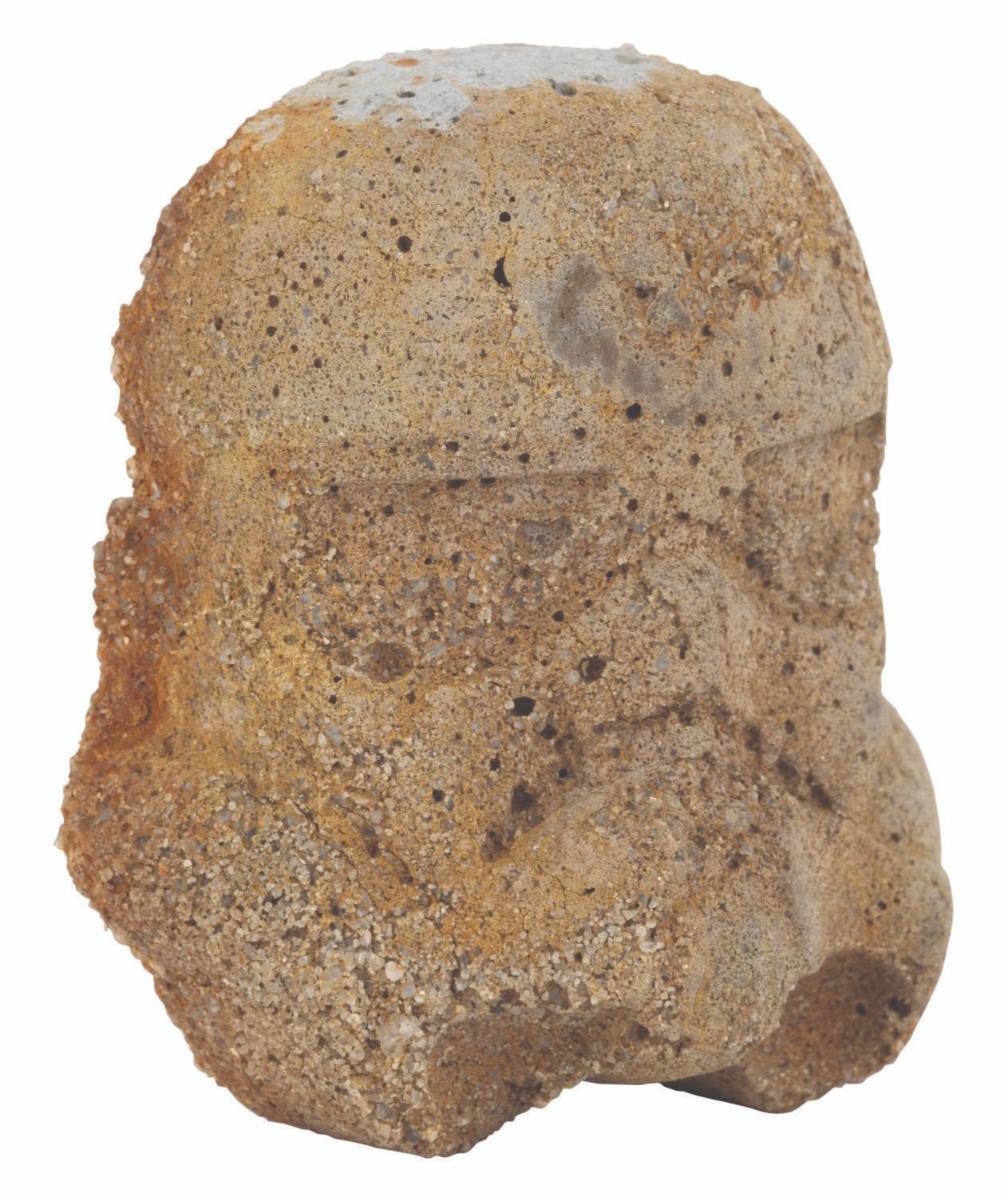 (Disney’s Hollywood Studios, 2010s-2020s) An original prop of a relief stormtrooper helmet from Star Wars: Galaxy’s Edge. Measuring 2.25" x 2" and 1" deep, the concrete decoration is in very good condition with intentional distress.