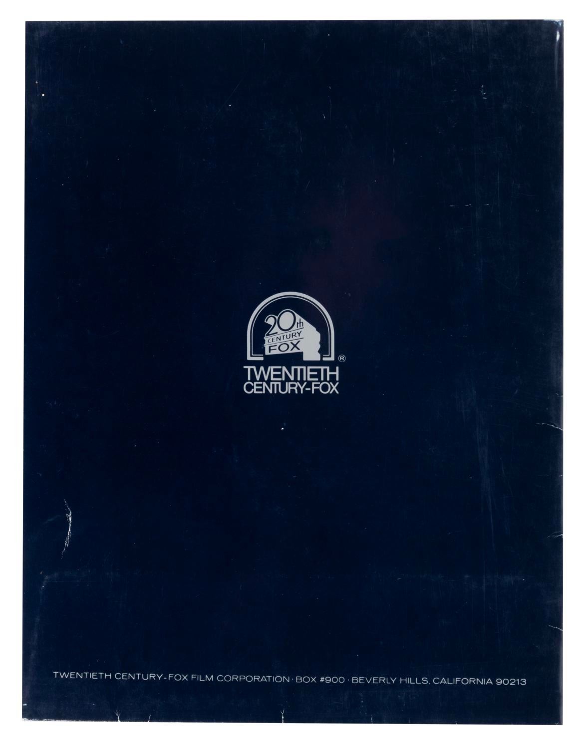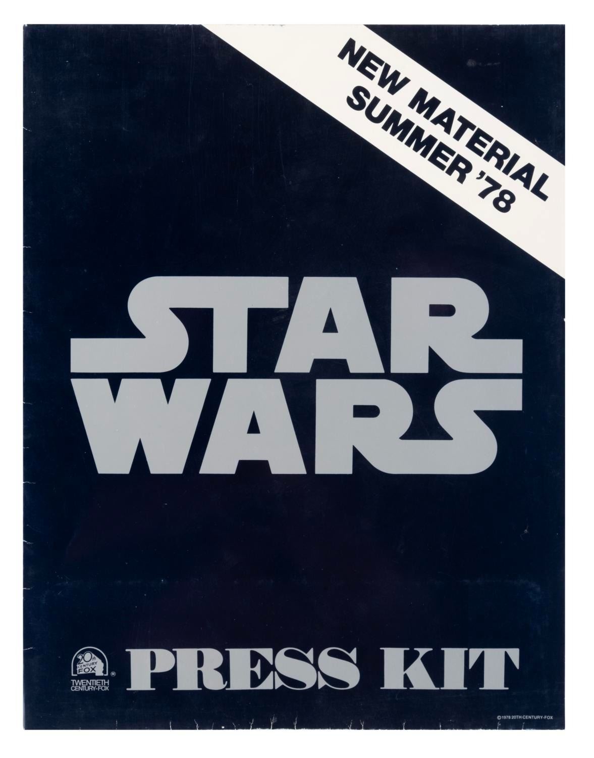 (20th Century Fox, 1978) A press kit cover only for “Star Wars” promising new materials for the summer of 1978. Incredibly, compared to today’s releases, “Star Wars” was still playing in theaters over a year after the initial release. Measuring 9” x 11.75”, the cover is in good condition with edge wear and handling wear including small scuffs and creases.