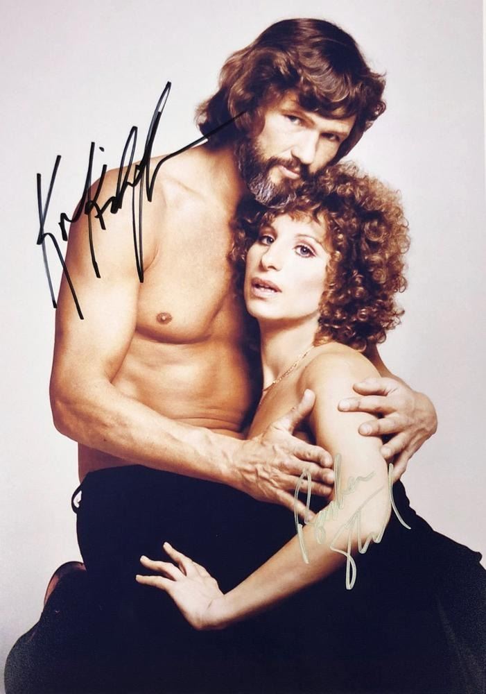A Star is Born (1976) signed movie photo autographed by Barbra Streisand and Kris Kristofferson.
