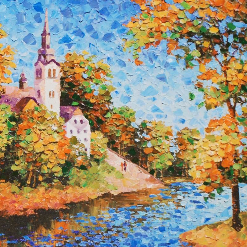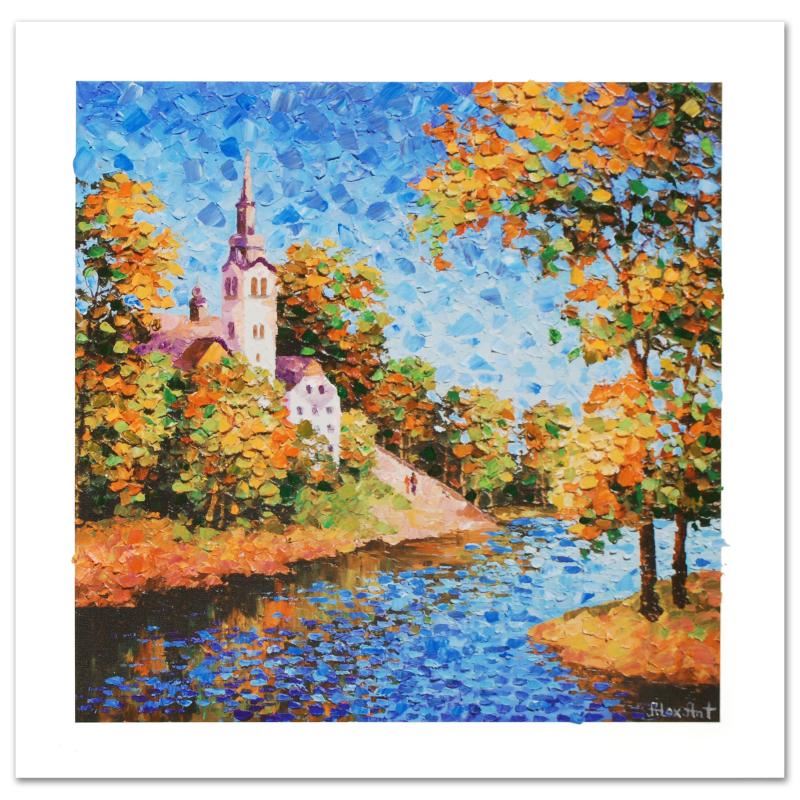 "A Steeple on the Hill" is a limited edition hand embellished giclee on canvas, numbered inverso and hand signed by Alexander Antanenka. Includes Certificate of Authenticity! Measures approx. 20" x 20" (image).