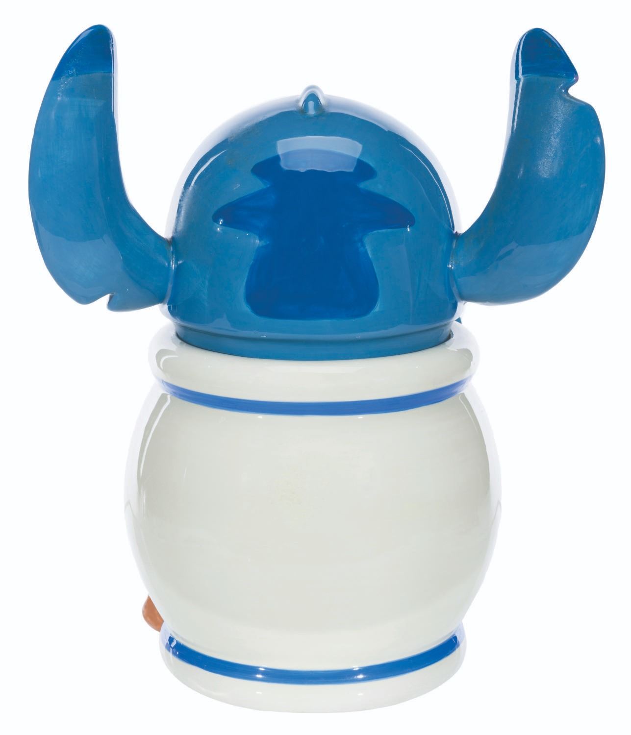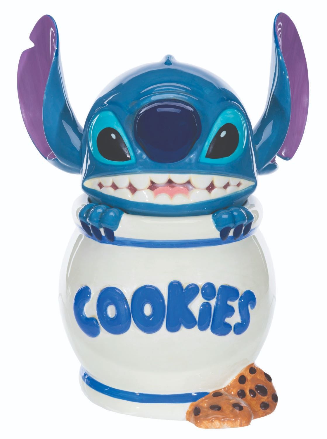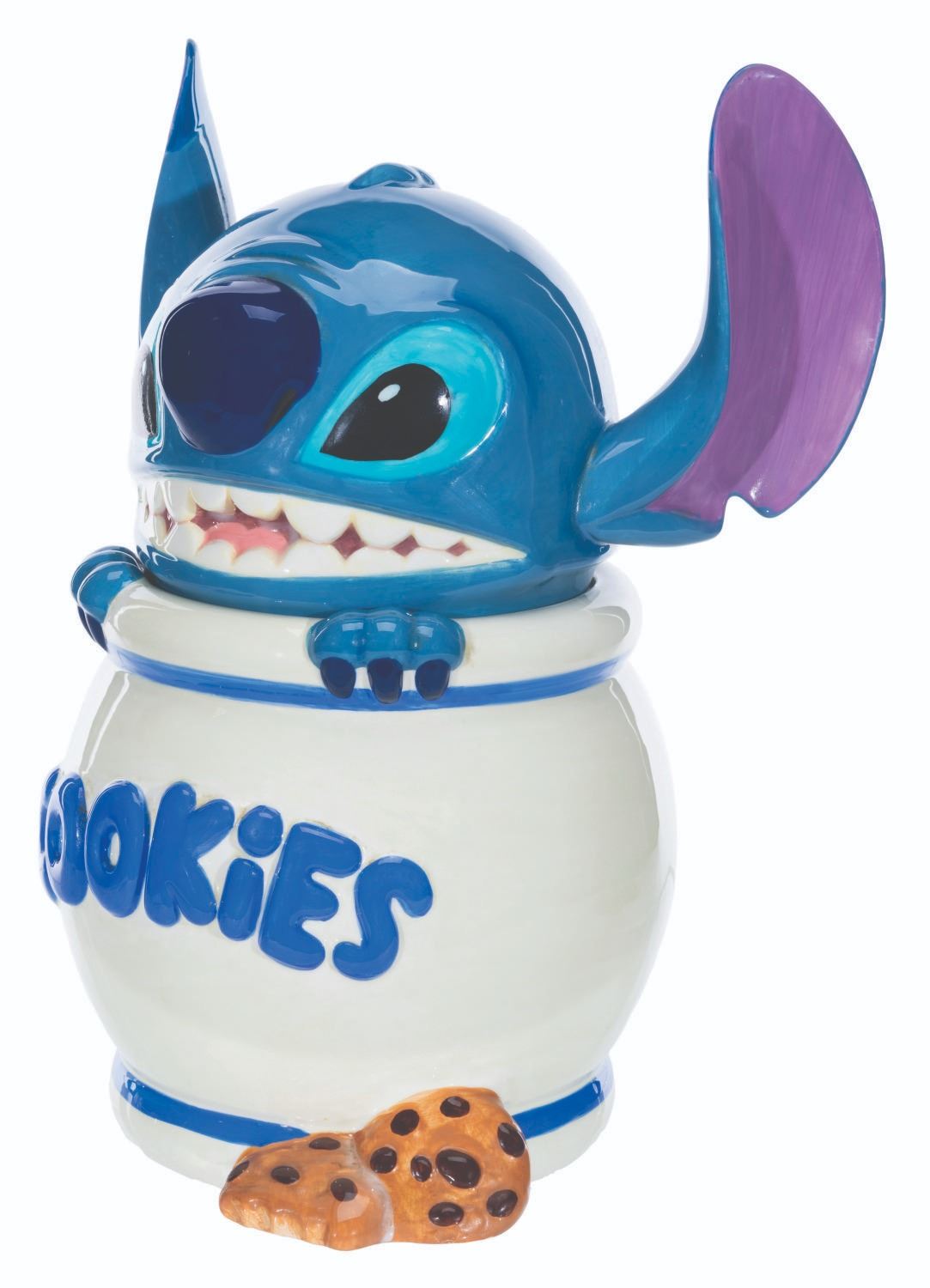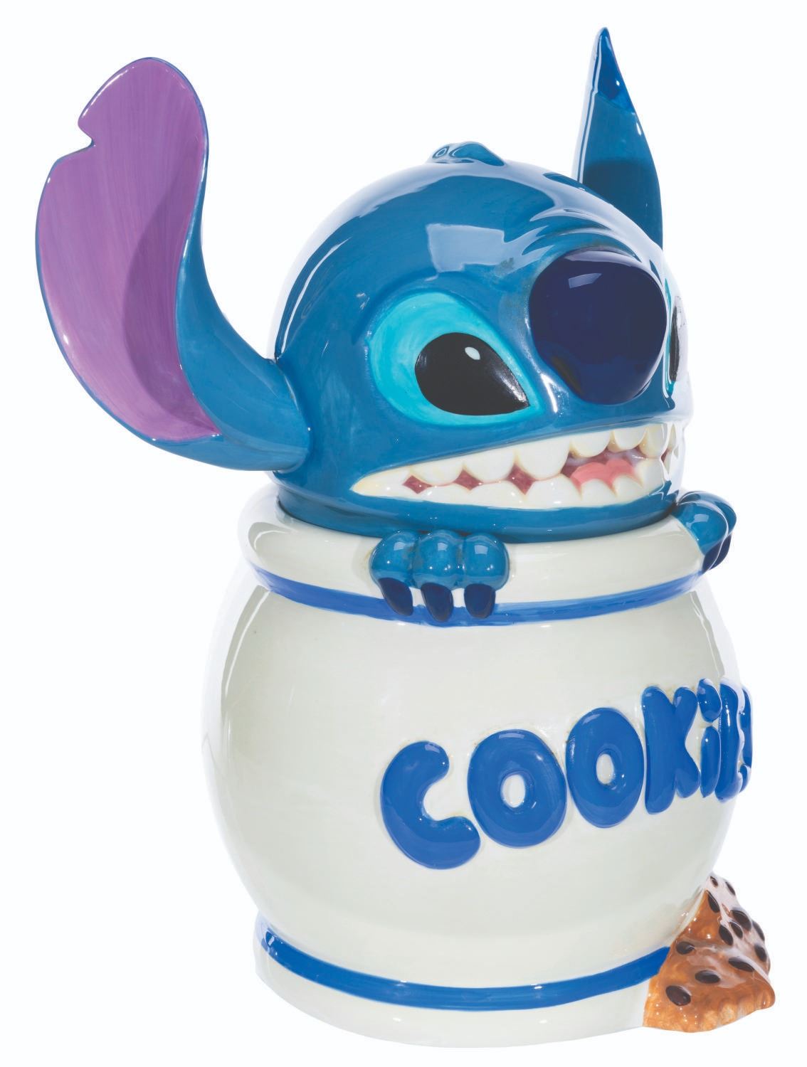 (Disney, 2000s) A cookie jar featuring Stitch from "Lilo & Stitch." Measuring 12" tall and 6" in diameter, the cookie jar displays in good condition with stains, light wear, and a tackiness to the touch on the head.