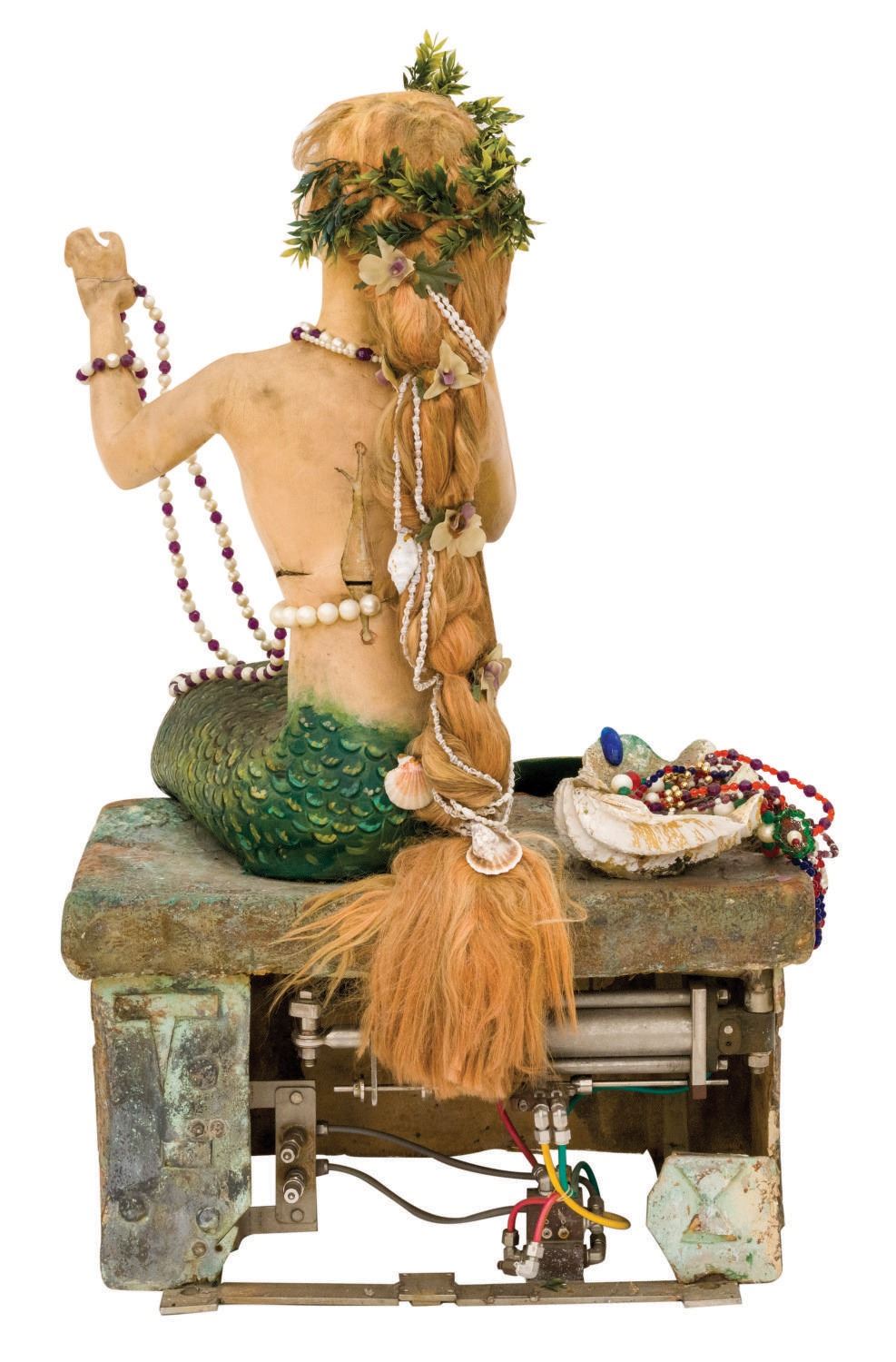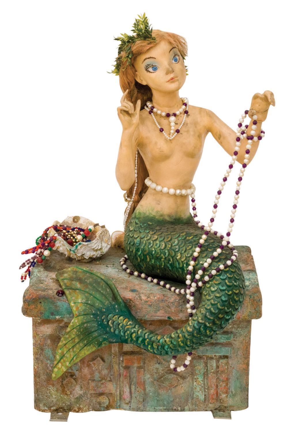 (Disneyland, 1959) An original animatronic mermaid prop from Disneyland's "Submarine Voyage". This mermaid was one of several that could be seen gathered around piles of treasure in the sunken city of Atlantis. The mermaid is seated on a faux stone chest that still houses her original pneumatic hookups. The hookups would cause the mermaid to turn back and forth at her waist to give her an added level of realism within the attraction. The mermaid measures approximately 30"x20" and 40" tall. The mermaid is in good condition overall with some expected wear throughout from use at the park, including a cut in the back of her right hand. Functionality has not been tested. This item will require special shipping arrangements. Please inquire before bidding.