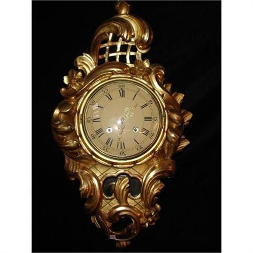 A Swedish gold mounted carved wooden Cartel Clock from period 1930.