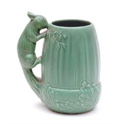 A Sylvac type green glazed vase of acorn shape with squirrel handle, 8ins £60-80...