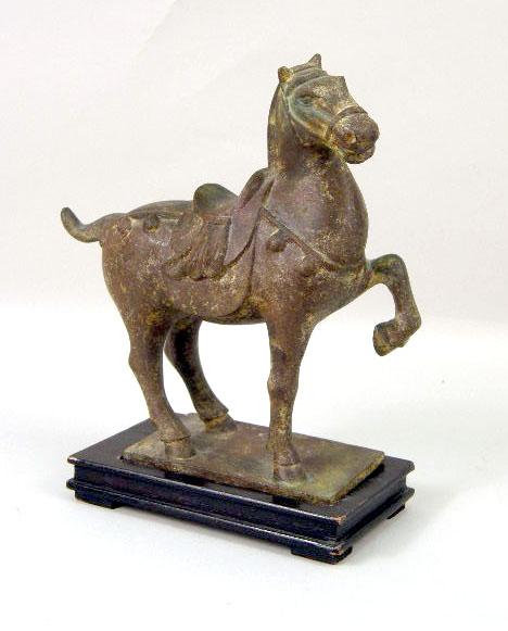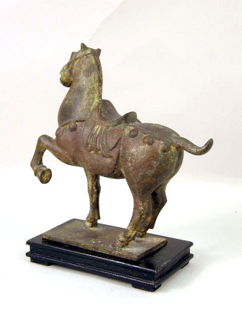 A TANG-STYLE METAL FIGURE OF A PRANCING HORSE