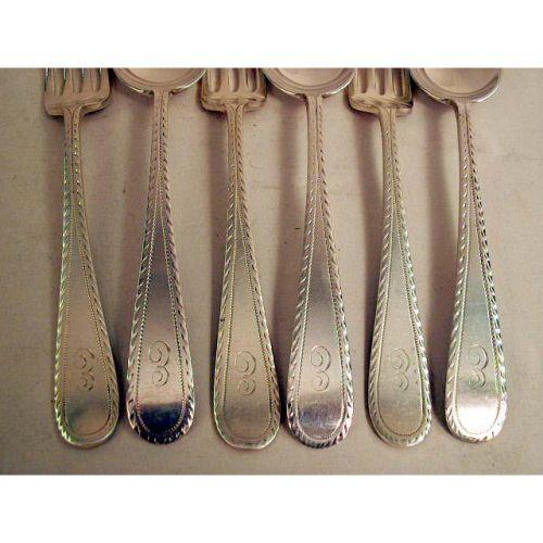 A THEODORE B. STARR FEATHER EDGE PATTERN STERLING SILVER SET OF TWELVE TABLESPOONS AND ELEVEN DINNER KNIVES<BR><BR>Total weight 38 T.O.