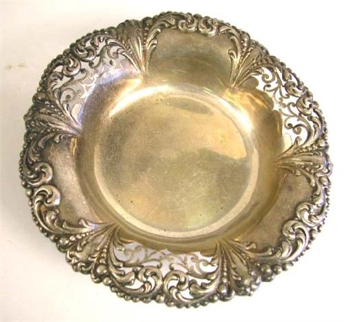 A THEODORE B. STARR STERLING SILVER CIRCULAR BOWL WITH RETICULATED BORDER; 9"dia., apx. 8 T.O.