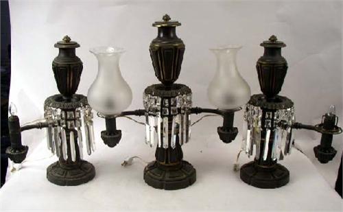 A THREE PIECE SET OF BRONZE ARGAND LAMPS SIGNED GARDNER;