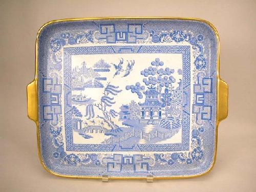 A TIFFANY AND COMPANY CHINESE EXPORT PORCELAIN STYLE PARCEL-GIFT TRAY, 17"W;