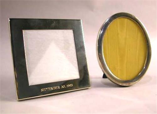 A TIFFANY AND COMPANY STERLING SILVER SQUARE PICTURE FRAME; Dated "September 30, 1995", 4"h And a sterling silver oval picture frame 4 1/2"h