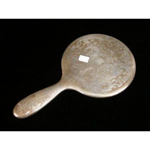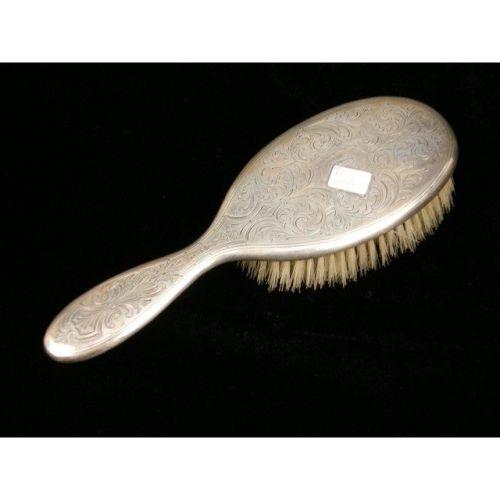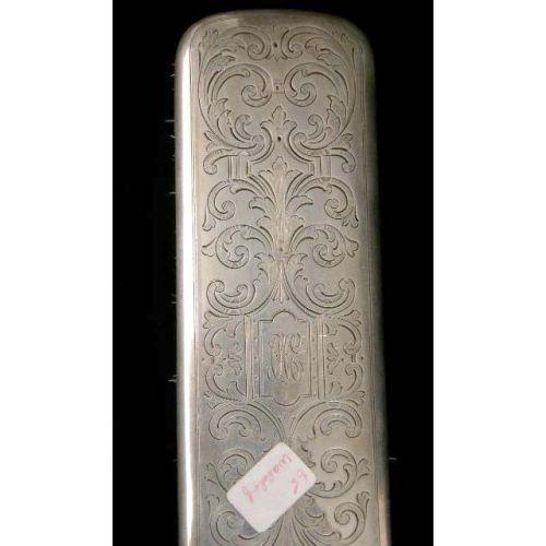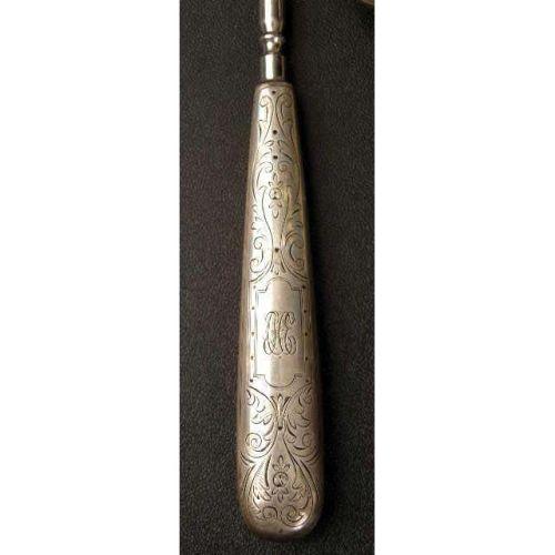 A TIFFANY & CO. MAKERS FOUR PIECE STERLING SILVER HANDLED DRESSER SET<BR><BR>Monogrammed "CHE", comprising a handled mirror, 10-1/4"long, handled brush, brush and shoe button hook