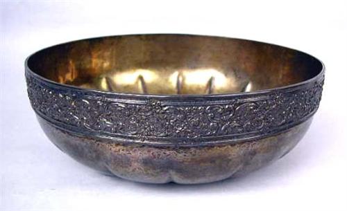 A TIFFANY & CO. MAKERS STERLING SILVER CENTERPIECE BOWL WITH FLORAL APPLIED BORDER; #8230 9300 T Mark(1891-1902)