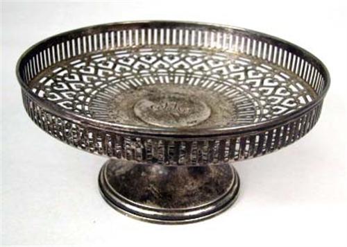 A TIFFANY & CO. MAKERS STERLING SILVER RETICULATED FOOTED COMPOTE; With center monogram, JR, #18206704 M Mark, 5-1/8"dia., apx. 3 T.O.