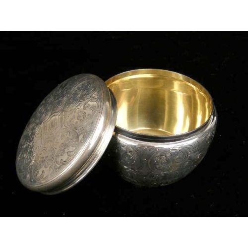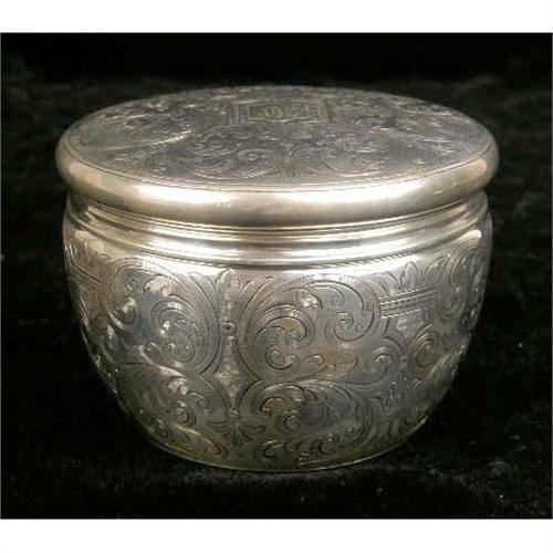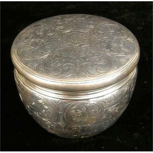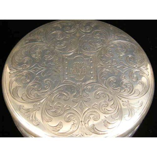 A TIFFANY & CO. MAKERS STERLING SIVER DRESSER BOX<BR><BR>Monogrammed, 3-3/4"dia., weight apx. 7 T.O.