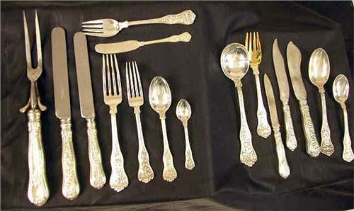 Some monogrammed, Comprising, ten dinner forks, nine dinner knives, fourteen luncheon forks, nine luncheon knives, four vermeil bowl fish forks, seven salad forks, one dessert fork, six seafood forks, eight fish knives, two master butter knives, ten flat