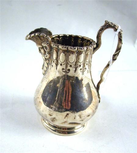 A TIFFANY & CO. SILVER CREAMER; with a bearded man's face with rams horns beaker, on circular molded base, (dents, losses)