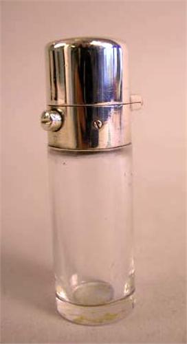 A TIFFANY & CO. STERLING SILVER HINGED LID GLASS PERFUME FLASK; Cylindrical, 2-3/8"h x 3/4"dia.