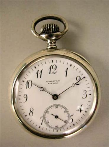 A TIFFANY & CO. STERLING SILVER POCKET WATCH; Marked 935 silver, three letter scroll monogram on reverse, 1-5/8"dia.
