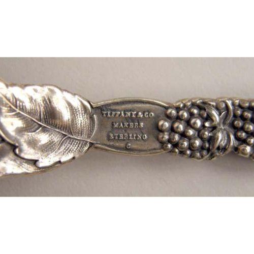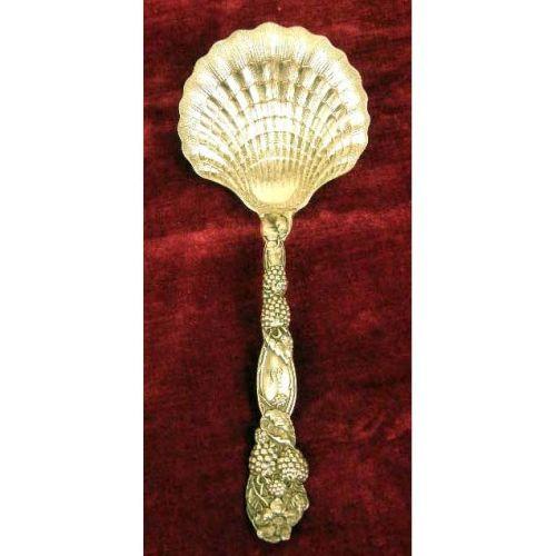 A TIFFANY & CO. STERLING SILVER STRAWBERRY PATTERN SHELL-FORM BOWL SERVING SPOON<BR><BR>Monogrammed, 8-1/2"l, weight apx. 4 T.O.