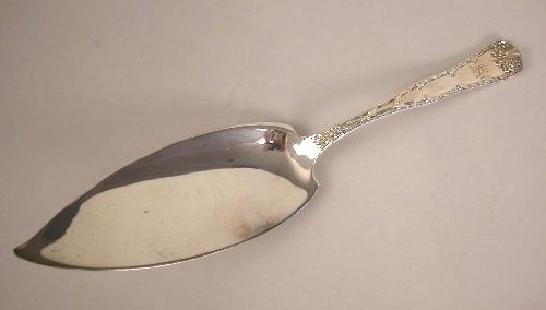 A TIFFANY & CO. "WAVE EDGE" PATTERN (PAT. 1884) STERLING SILVER FISH SLICE; With three letter scroll monogram, 12"l, apx. 4 T.O.