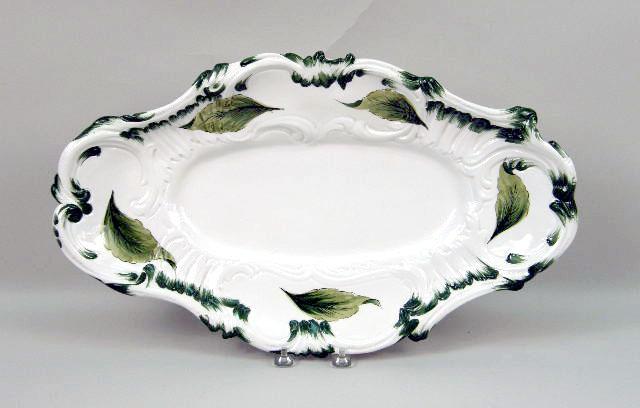 Made in Italy. Together with a Tiffany & Co. shaped oval platter, leaf motif, also made in Italy. 18"l and 20"l