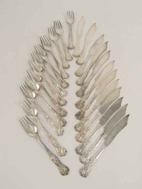 A TIFFANY & CO. "KING" PATTERN SILVER SOLDERED FISH SET