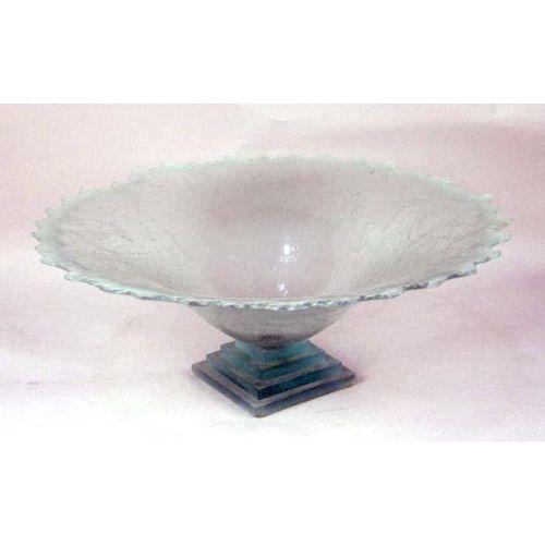 A TINTED FROSTED TO CLEAR ART GLASS FOOTED CENTERPIECE<BR><BR>Chips, 8"h x 20 1/2"w