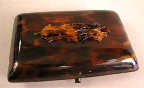 A TORTOISE SHELL RECTANGULAR CIGARETTE CASE; With applied monogram, 4-1/8" x 2-5/8"
