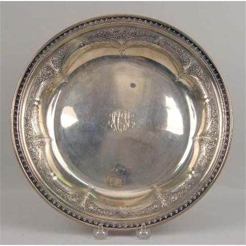 A TOWLE "FRENCH" PATTERN STERLING SILVER CIRCULAR BOWL<BR><BR>Monogrammed, neo-classical style with floral garland, 12"diameter, weight apx. 18 T.O.