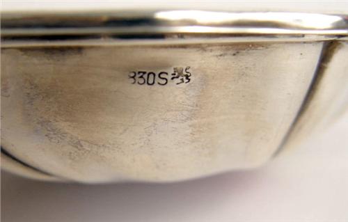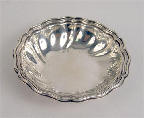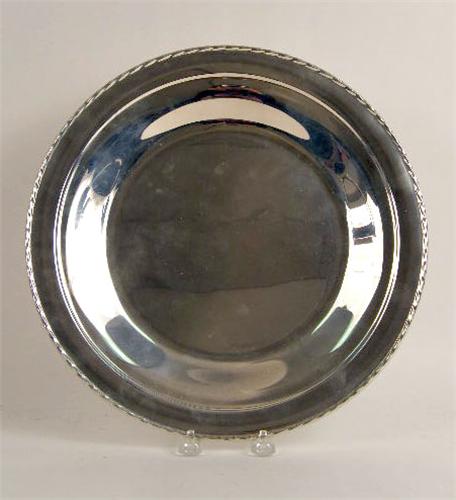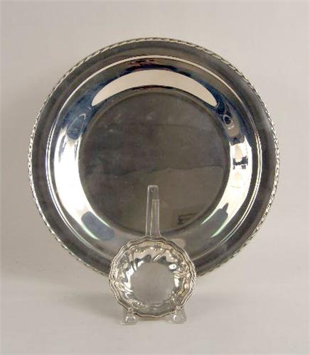 #144, with ribbon motif edge. Together with a small circular dish with scalloped molded rim, total weight apx. 20 T.O. 13"dia., 4"dia. respectively