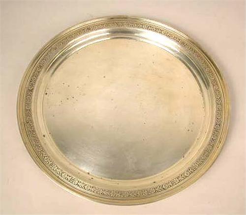 A TOWLE "VIRGINIA CARVEL" PATTERN STERLING SILVER CIRCULAR TRAY WITH FLORAL BORDER;