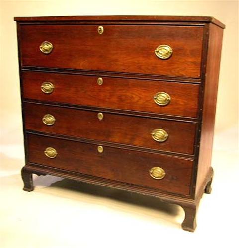 A TRANSITIONAL FEDERAL CHERRYWOOD CHEST OF DRAWERS; New England, probably Connecticut, with rectangular top above four drawers a gadrooned base and bracket feet 41"h x 42"w x 19 3/4"d