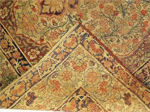 Worked in tones of blue and tan. Wear. 9`6 1/2"l x 5`w. Together with a Persian rug worked in tones of red. Wear. 6`3 3/4"l x 3`11 1/2"w. 2 pieces.