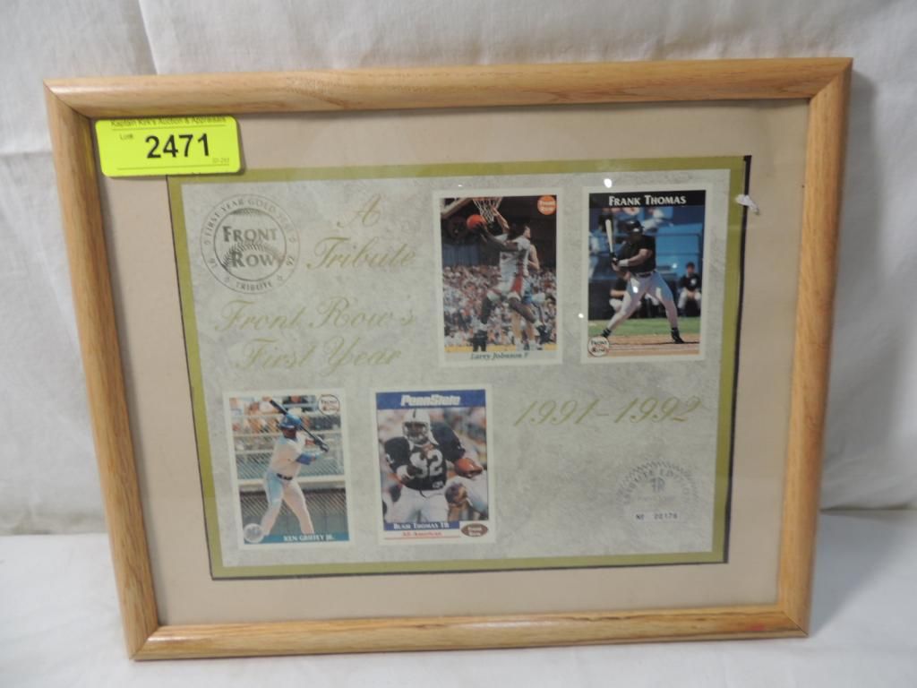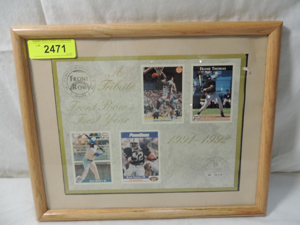 FRAMED CARDS A TRIBUTE FROM FRONT ROWS FIRST YEAR 1991-1992 LARRY JOHNSON, FRANK THOMAS, KEN GRIFFEY JR, BLAIR THOMAS. AS SHOWN SEE PHOTO FOR MORE DETAILS.