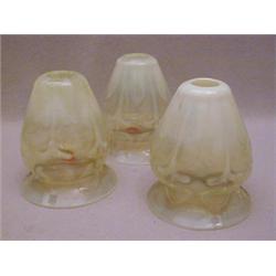 A TRIO OF VASELINE GLASS LIGHT SHADES, c.1905, each with trailed Art Nouveau design, height 14cm (3) £80-100