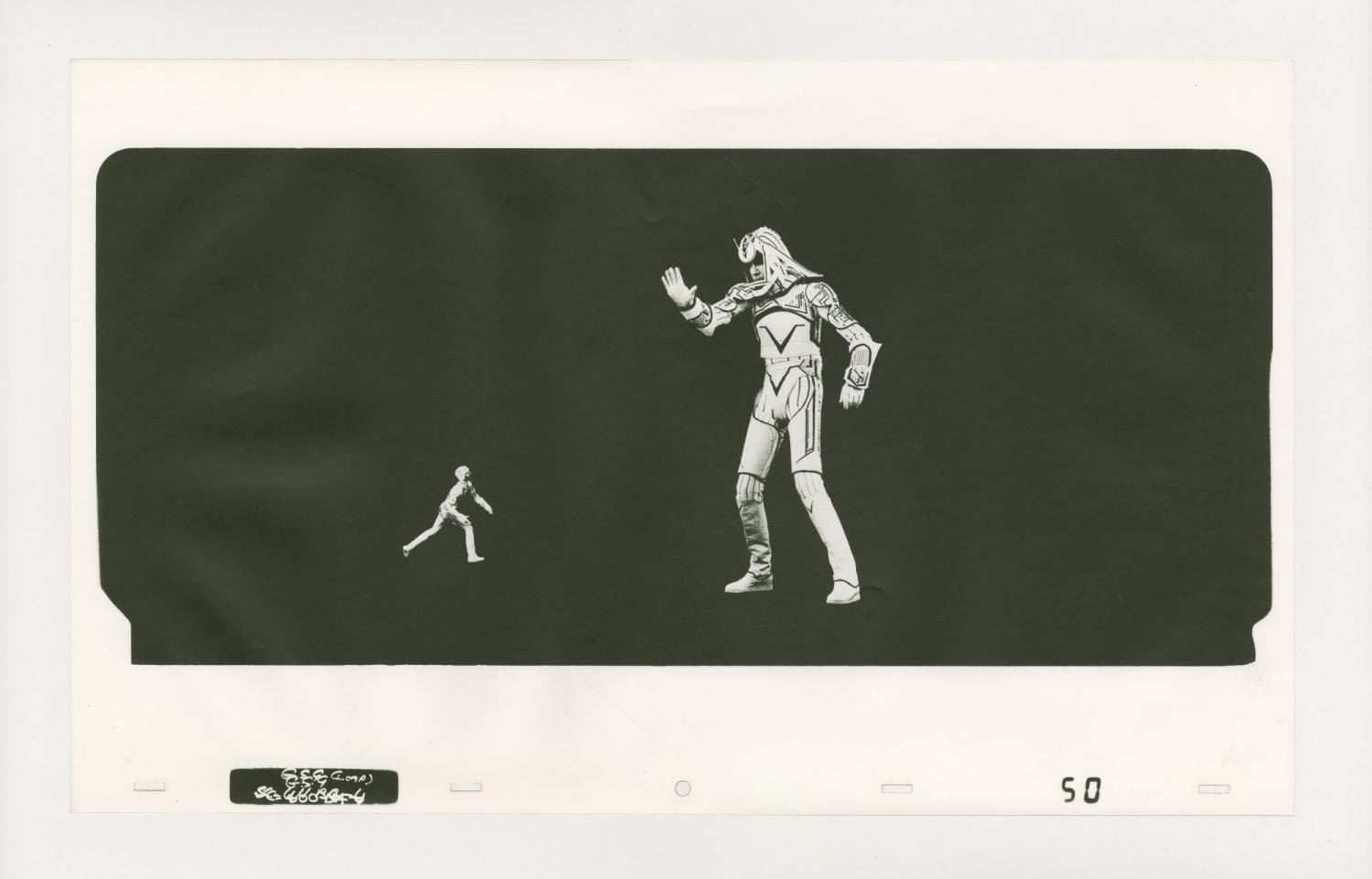 (Disney, 1982) A photostat print from the live-action feature "TRON." The photostat was created at the studio and used during the production of the special effects sequences in the film. With an image size of 6.25" x 7.75" on 12.25" x 20" paper, the print is in very good condition with rippling and light handling wear.