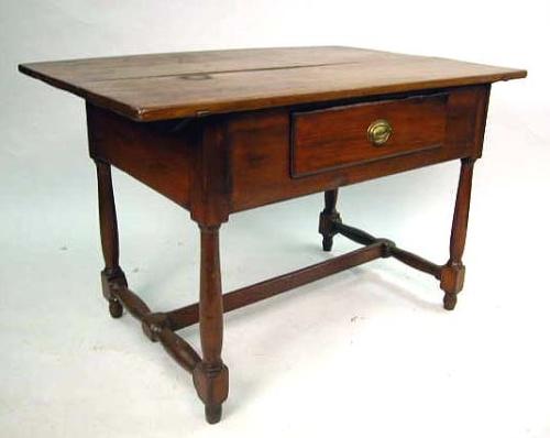 A TURNED AND FIGURED WALNUT AND CHERRYWOOD TAVERN TABLE; Mid-Atlantic States; restorations