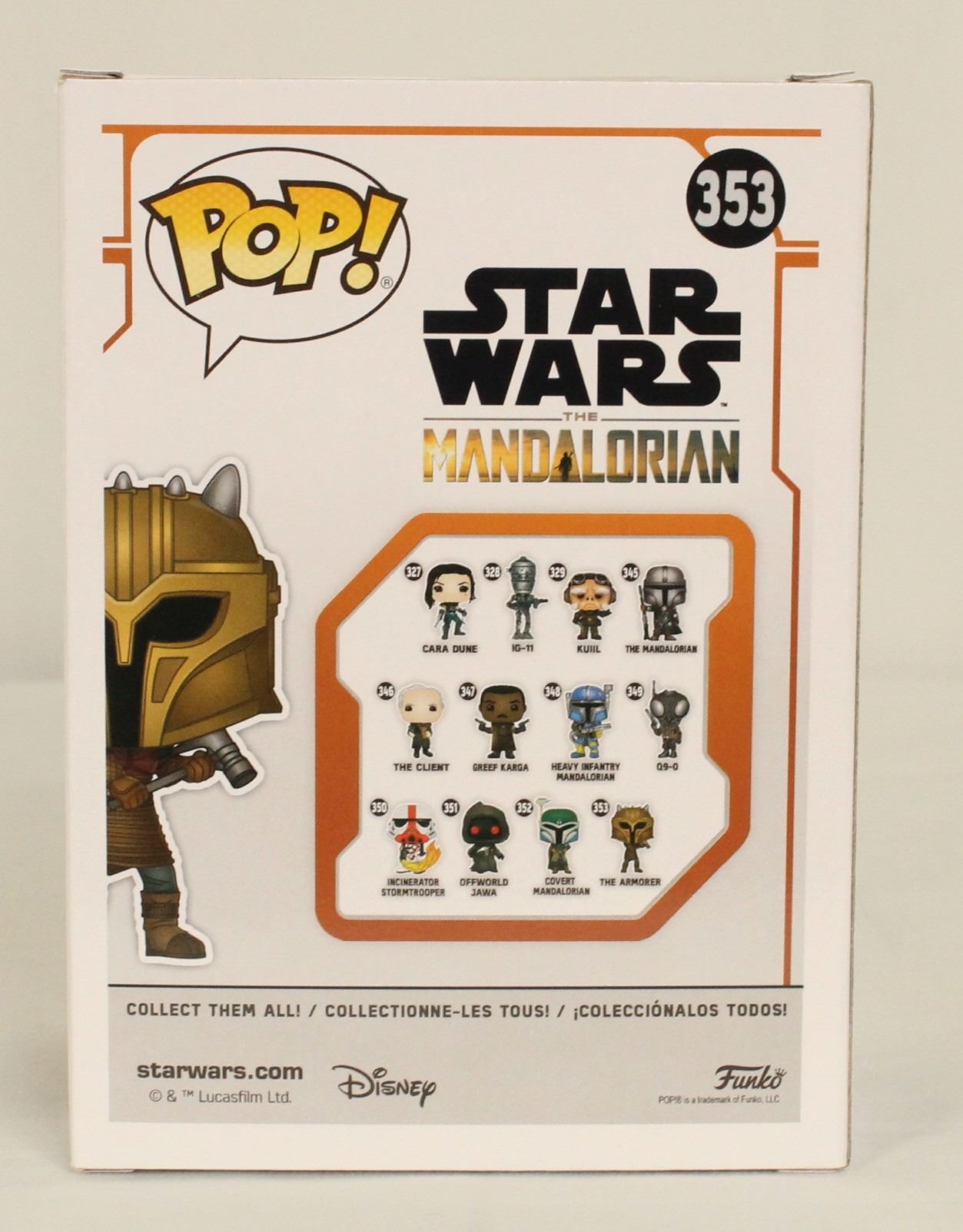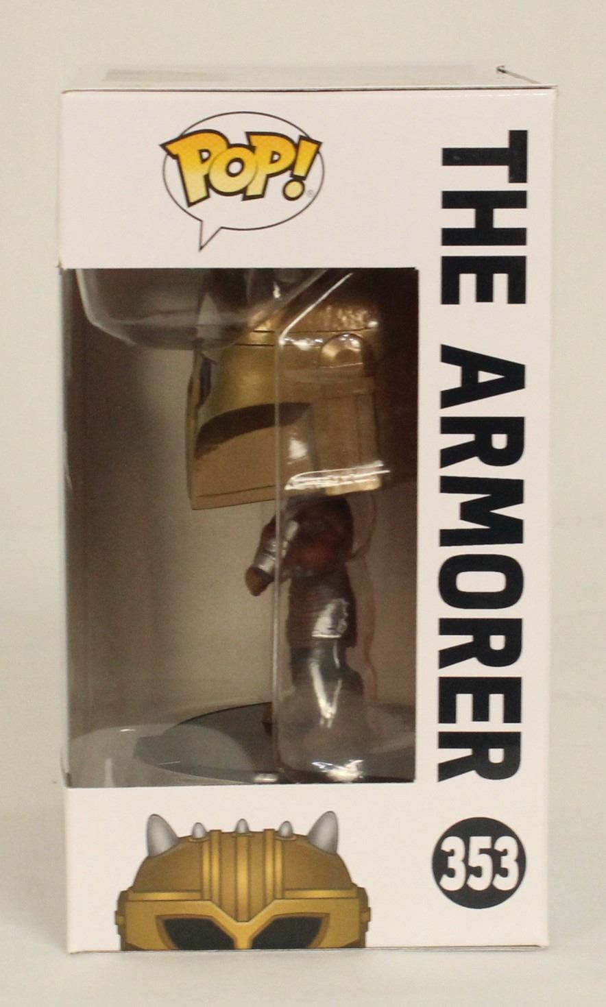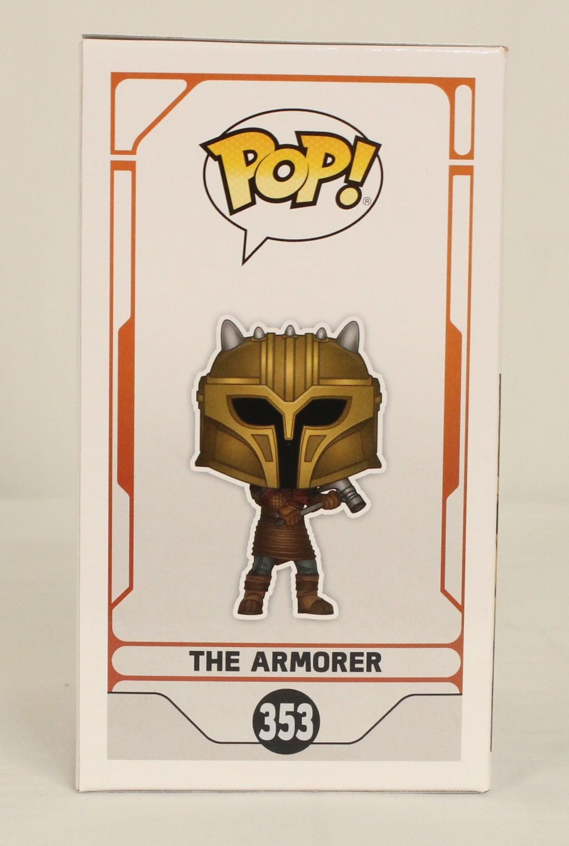 This is an excellent condition The Armorer #353 Funko Pop. The Armorer was a key character introduced in the hit Disney Plus show The Mandolorian.