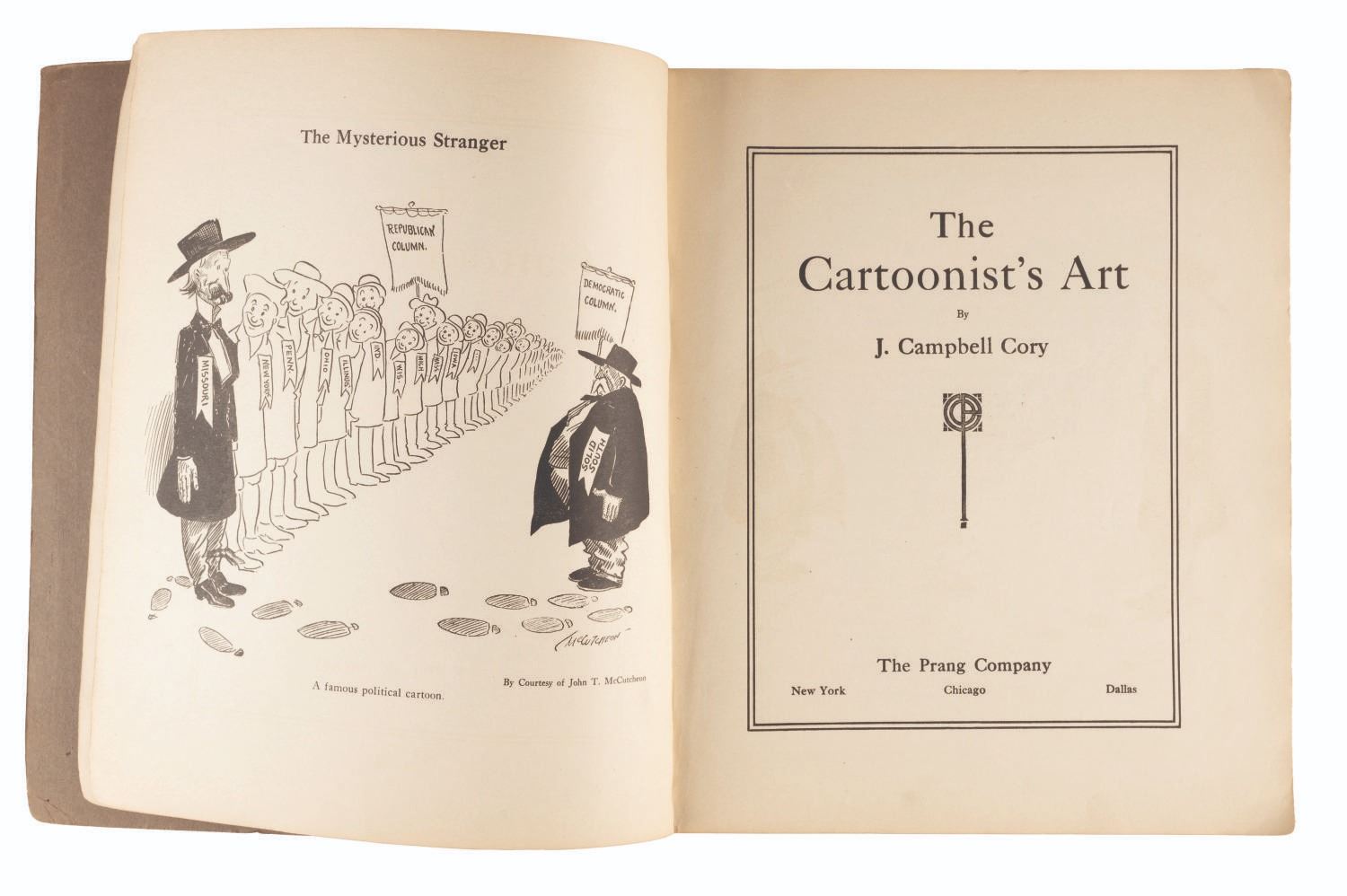 (J. Campbell Cory, 1920) A rare The Cartoonist's Art book by American Newspaper Cartoonist John Benjamin Cory, that was likely a valuable tool for the young Bob Clampett as he learned the basics of cartooning. Measuring 10" x 12", the book is in good condition with some staining and discoloration to the cover and slight separation to the binding. Stamped "Property of Bob Clampett" on interior pages.